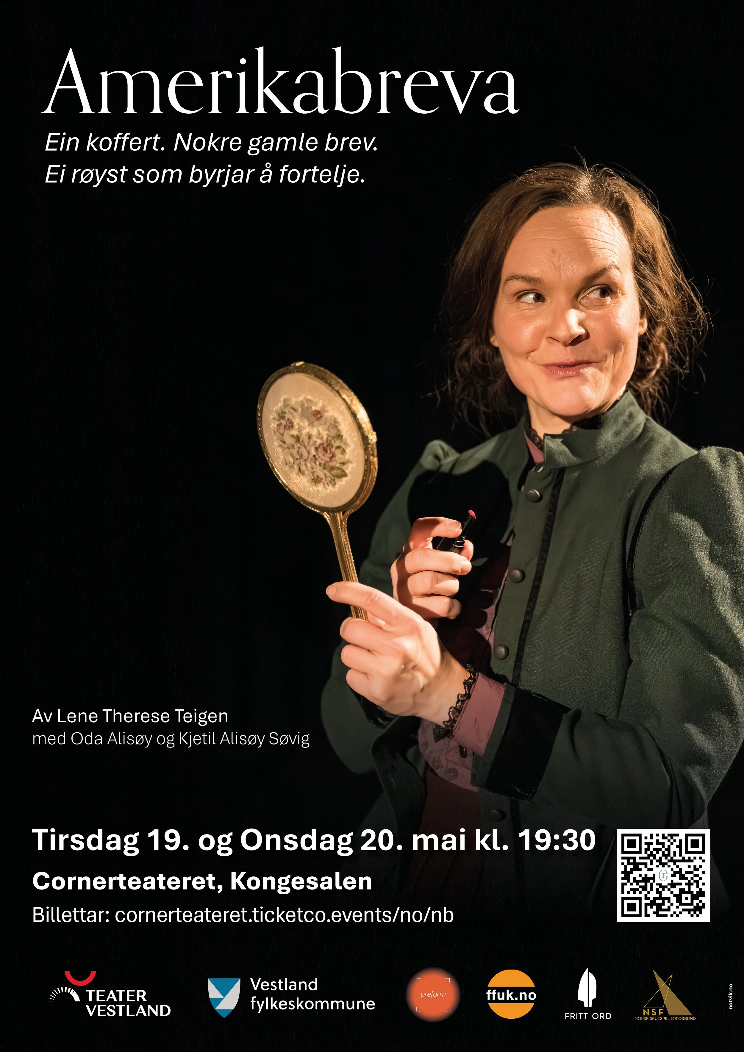 AMERIKABREVA er produsert av Aldeles Alisøy i samarbeid med Teater Vestland, på oppdrag frå Vestland fylkeskommune i samband med Utvandrarjubileet 2025.