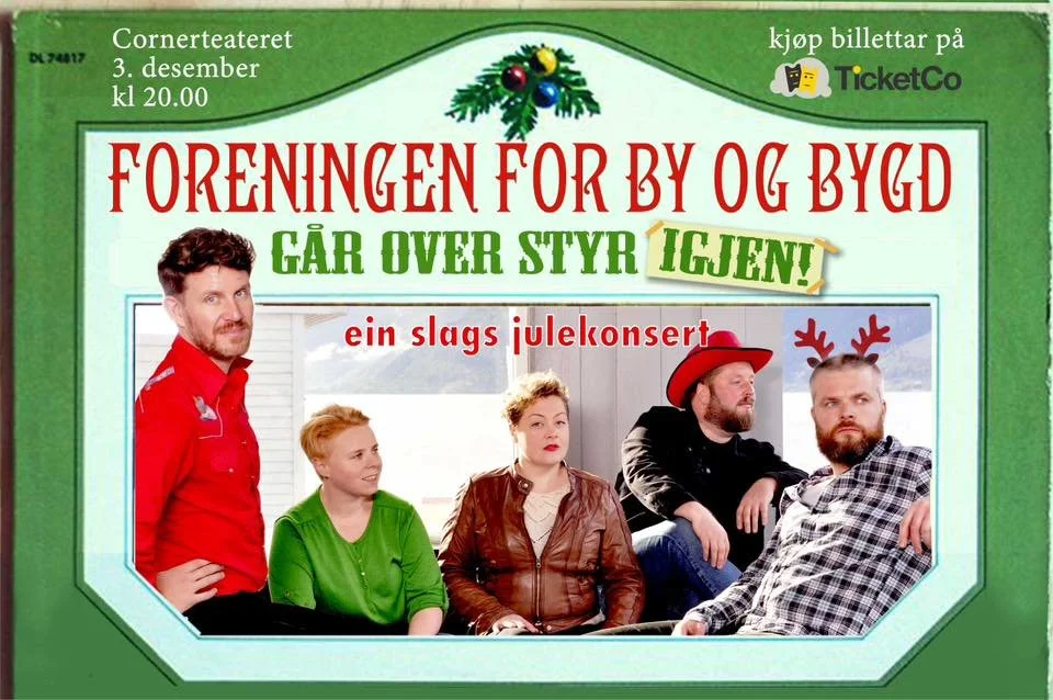 Foreningen for By og Bygd gjev deg stolt country og flaue vitsar. I tillegg får vi ulike gjestar innom, litt som Timmy Grashoppe på den der Disney-julesendinga. For andre år på rad har vi leigd Cornerteateret for å gje alle ein god grunn til å sleppe unna adventsmaset som rår der ute. Og denne kvelden vil vi gjerne dele med deg – heilt frå oppvarminga og like til Det lyser i stille grender.